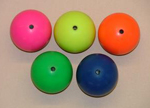 | The best of both worlds! These deluxe juggling balls have the dressy waterproof vinyl exterior of a stage ball, but are slightly flexible and filled like beanbags. A small black dot holds the millet inside. DX Balls feel like solid spheres, yet are essentially bounceless!