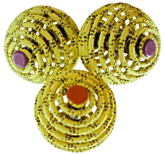 The original flaming juggling ball by FyreFli is a metal spiral cage with Kevlar wick in the very center. The size of the flame is enough to look impressive, but centered enough that you can juggle the balls