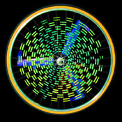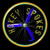 Hokey Spokes synchronize with each other automatically through infra-red, and can be programmed with a Palm handheld device. For personalized messages, up to 16 capital letters (and/or spaces) can be stored. Runs for approximately 48 hours per set of three AA batteries (not included.)