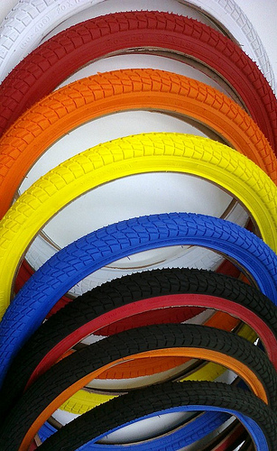 The Kenda Kontact tire is knurled for grip, nice all around directional tire, good for freestyle or flatland riding. Recommended inflation: 40-65 PSI.