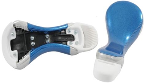 The Starfighter, by Kris Holm, is an extension shaped like the end of a spoon that attaches to the brake lever on a Magura brake (sold separately). This wider surface makes braking easier, and increases control without getting in the way of riding. Unlike a bicyclist, a unicyclist's fingertips often face the end of the lever instead of wrapping around it, which makes the Starfighter an excellent addition to all Magura hydraulic HS33 brakes (old or new style).